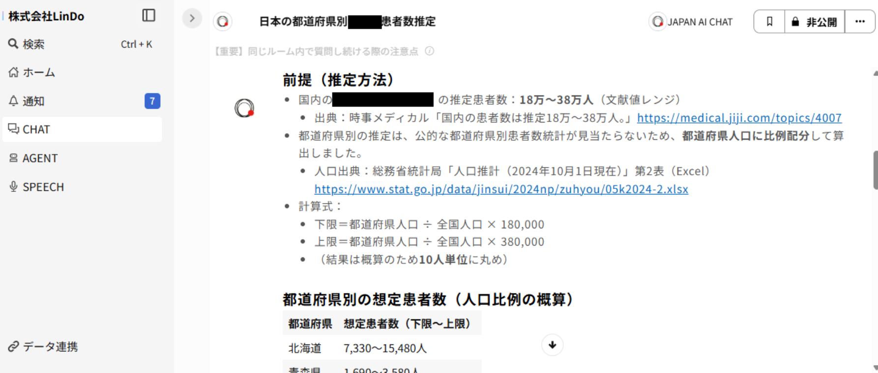 一番大きいのは、調査・検討の「初動」が変わったことです。たとえば、ある薬剤を日本に導入すると仮定したとき、売上規模の概算、医療従事者の受け止め、地域ごとの患者数の推定など、検討したい項目はいくらでも出てきます。従来なら調査会社に依頼して2〜3カ月、費用も数百万円という世界でした。